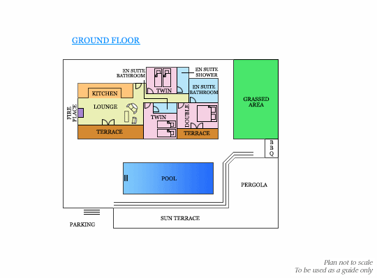 Villa Melia has 2 twin bedrooms, one with an en suite shower room and the other has an en suite bathroom. There is also a double bedroom with an en suite bathroom and access to the pool area. All bedrooms are spacious and tastefully decorated.
