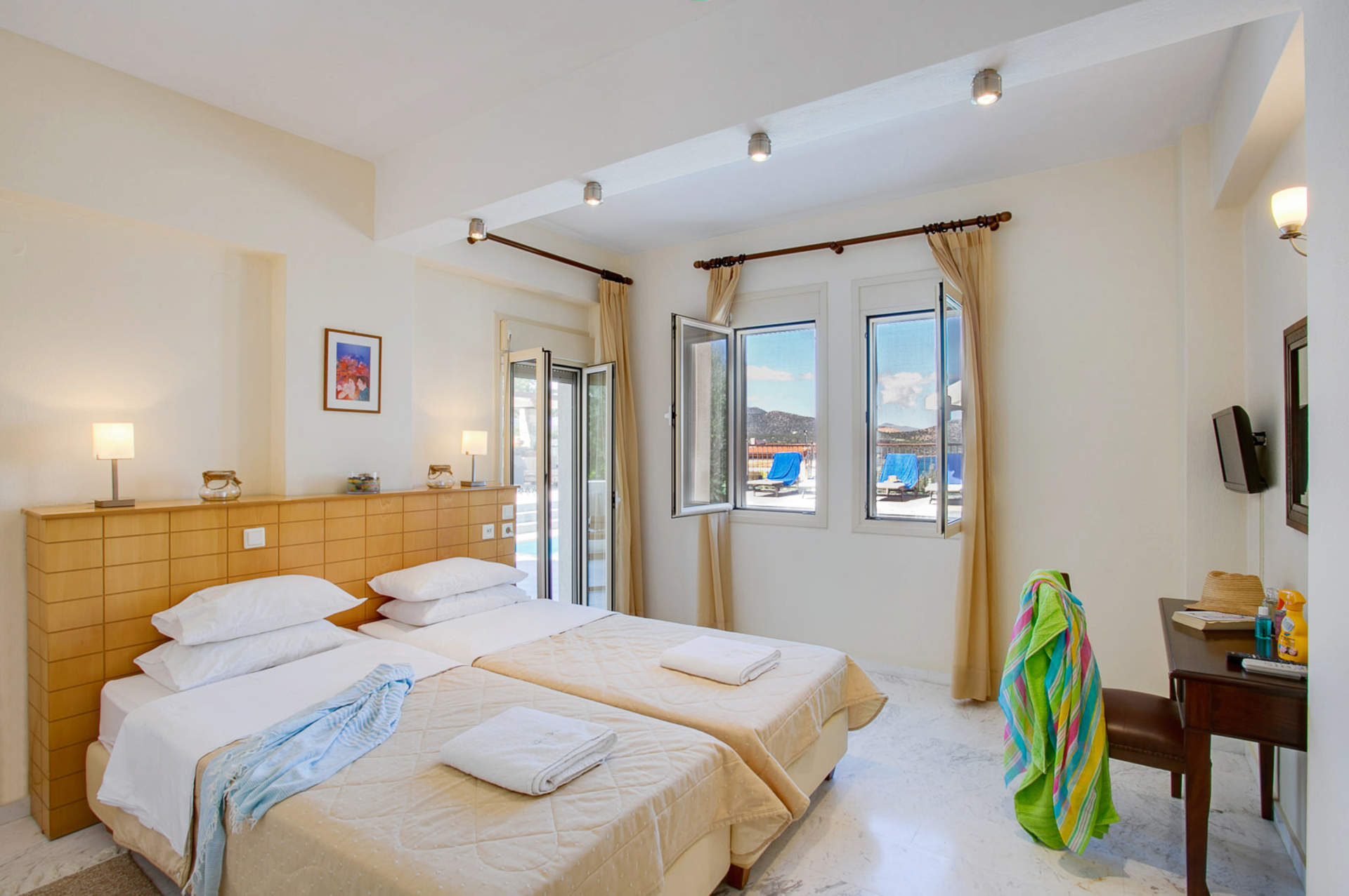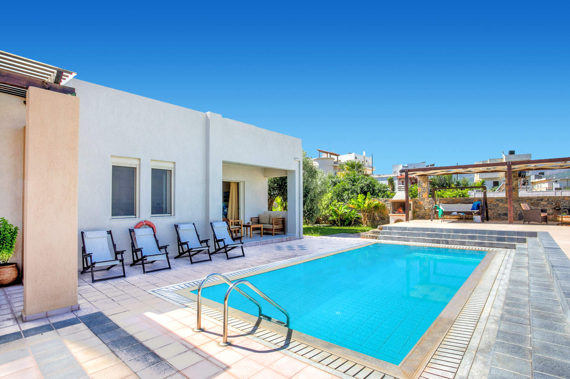 Villa Melia is the perfect choice if you don't want to hire a car on your holiday. The house is centrally located in Istron with shops and tavernas, as well as the beautiful beach of Aghios Panteleimonas, being within walking distance. Back at the villa you can enjoy a private swimming pool and pleasant sea views. What's more, the villa is furnished to a high standard and has 3 en suite bedrooms making it ideal for couples and small groups. WiFi and air conditioning/heating in the bedrooms and lounge are included.