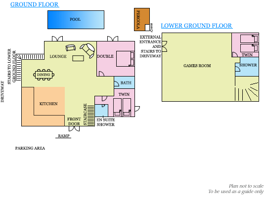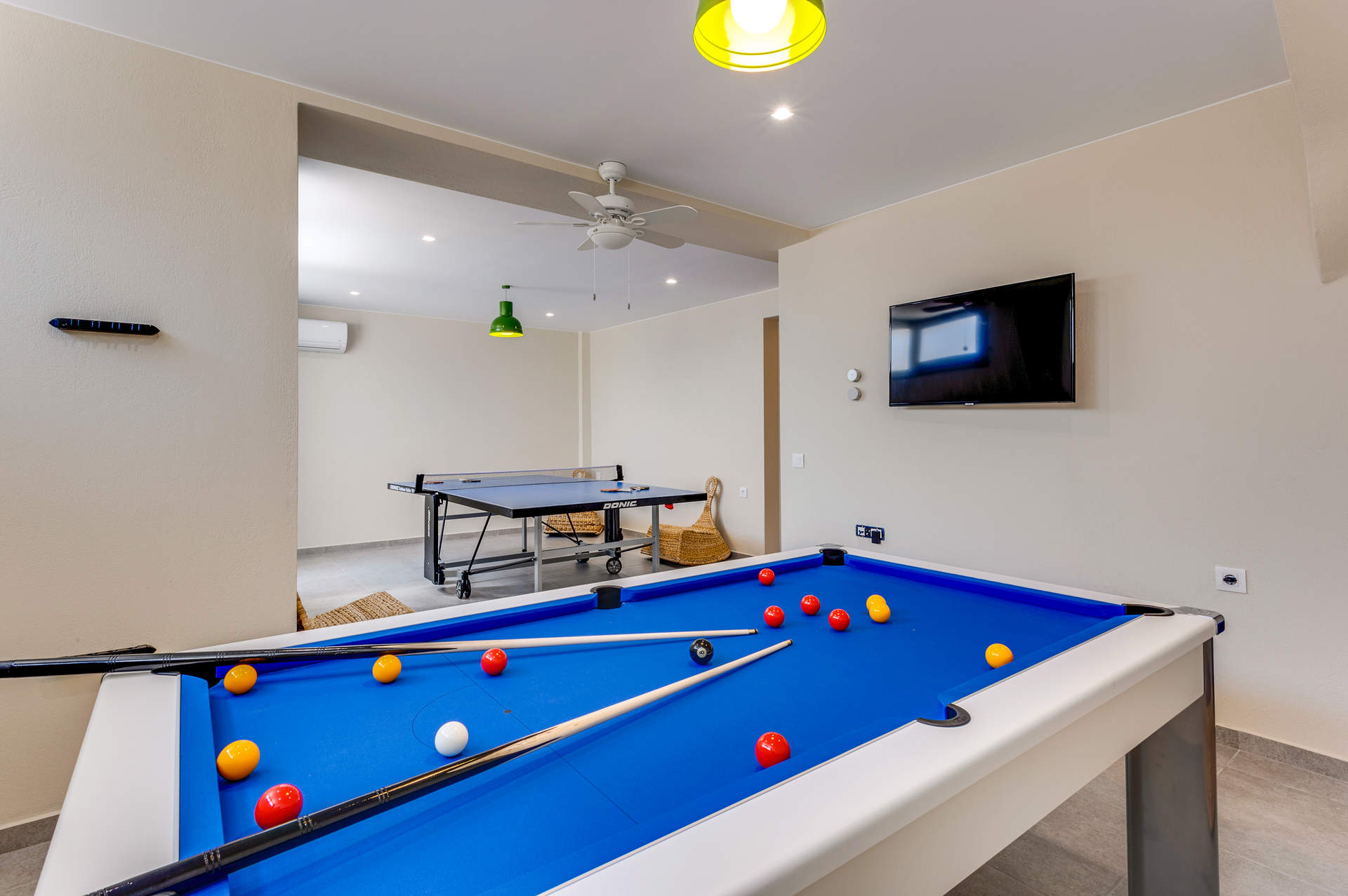 If soaking up the sun isn't for you, there is also a games room on the lower ground floor offering plenty of opportunities to challenge a friend or relative to a competitive game or 2. You'll also find a flat screen TV in this room, perfect for some background music or to kick back with a movie. A door from here opens onto a set of 12 steps up taking you to the driveway and pool terrace.