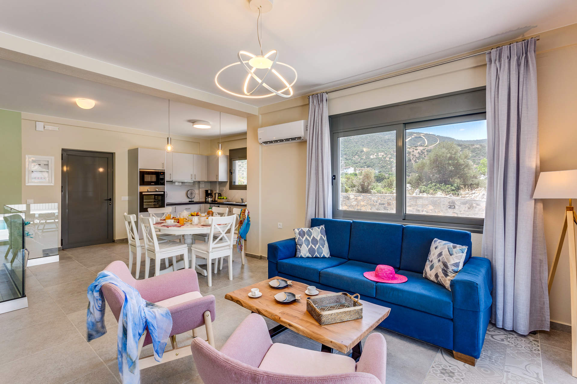 The exterior dining area and pool terrace provides the ideal setting to relax and enjoy what the island of Crete is all about, the scenery! Soak up the sunshine on one of the sun loungers around the private pool or take a refreshing dip to cool off. You can enjoy your evenings rustling up some tasty meals on the brick BBQ and dining alfresco under the pergola.