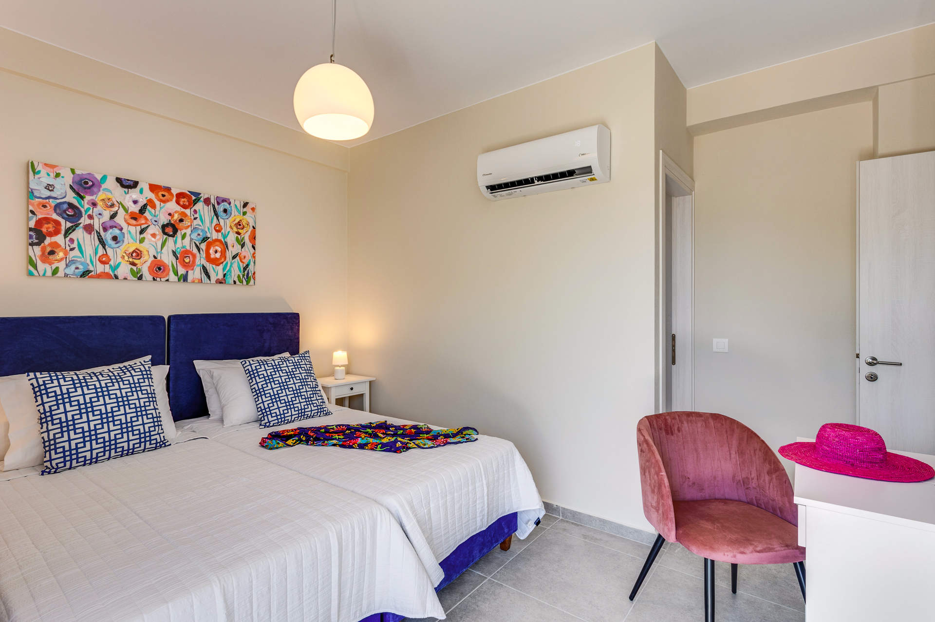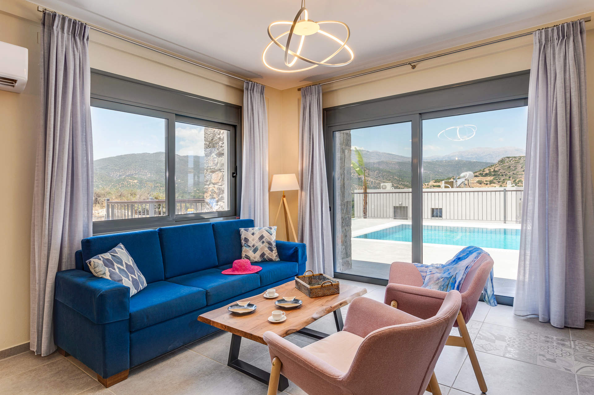 Set in an elevated position above the scenic Istron countryside, Villa Meliti is a modern 3 bedroom detached property with a wonderful location. The spacious terrace and stylish alfresco dining area offer the perfect spot to relax and admire those stunning sunsets. Situated in the charming area of Istron you'll be a 5 minutes' drive from the resort's main centre with a selection of traditional tavernas and local cafes. For beach lovers, there are 2 Blue Flag beaches 5 minutes' drive away with stunning clear blue waters. WiFi and air conditioning/heating in all the bedrooms, lounge and games room are included.