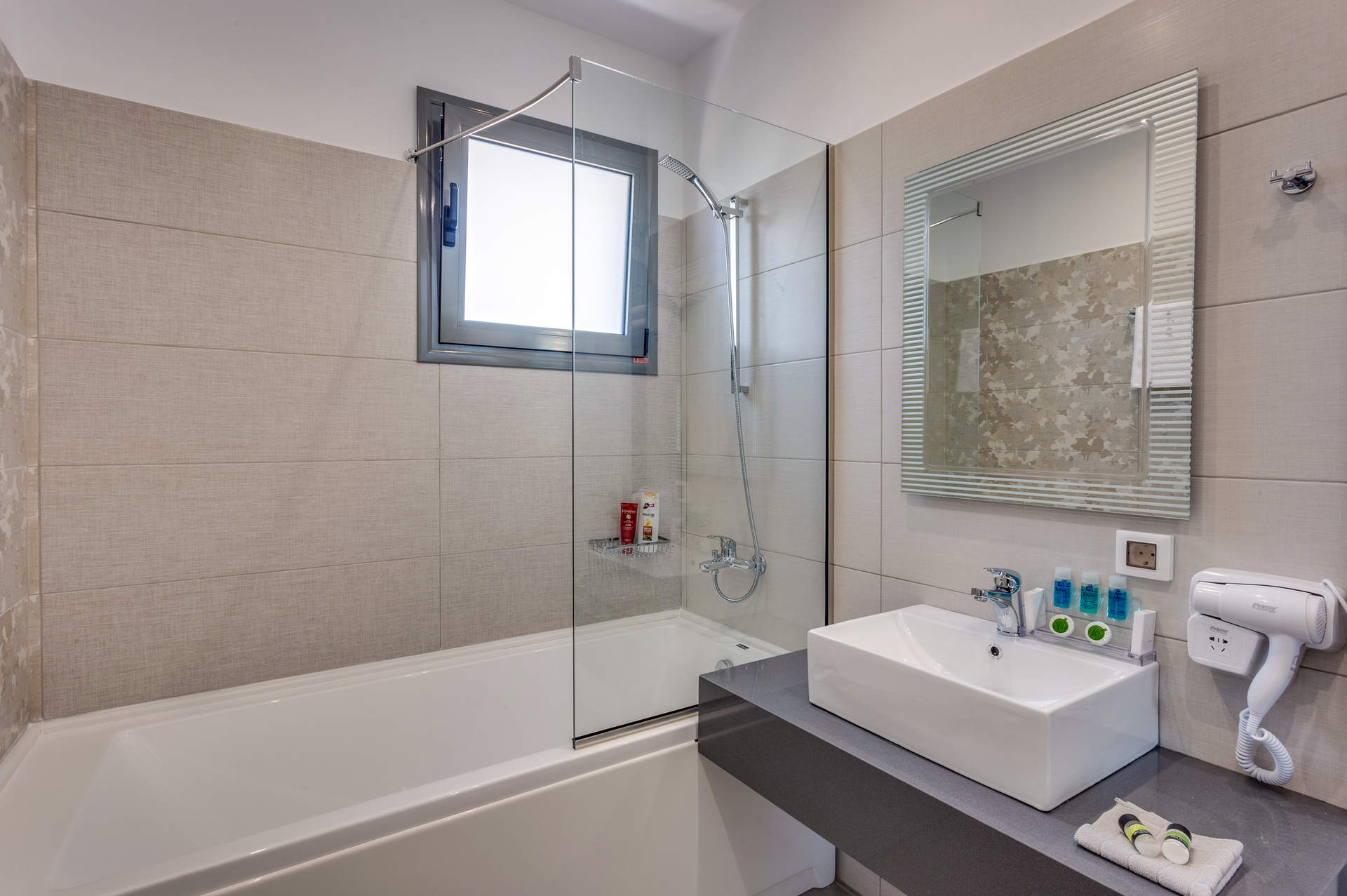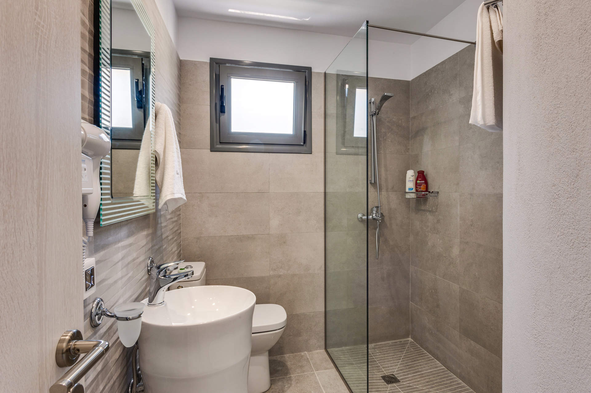 The villa compromises of 3 sophisticated, modern bedrooms divided between the ground and lower ground floor. On the ground floor is a spacious double bedroom with plenty of storage space and access out to the pool terrace. This room makes use of the separate bathroom. You'll also find 1 twin bedroom on this floor with an en suite shower room and patio doors leading out to the side of the villa. The remaining bedroom is on the lower ground floor, which is elegantly furnished with lots of storage space. This room makes use of the separate shower room.