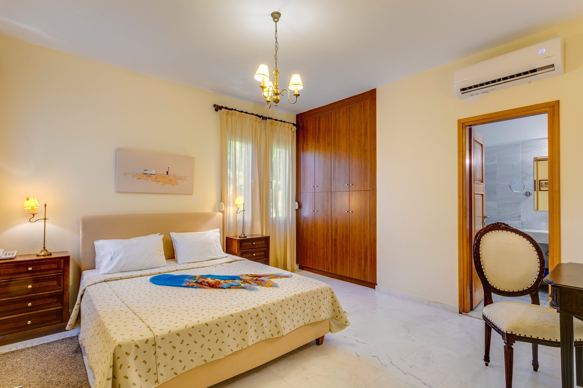 The double bedroom has an en suite bathroom and the twin bedroom uses the facilities of a separate shower room. Both bedrooms are comfortably decorated and situated at the back of the villa.