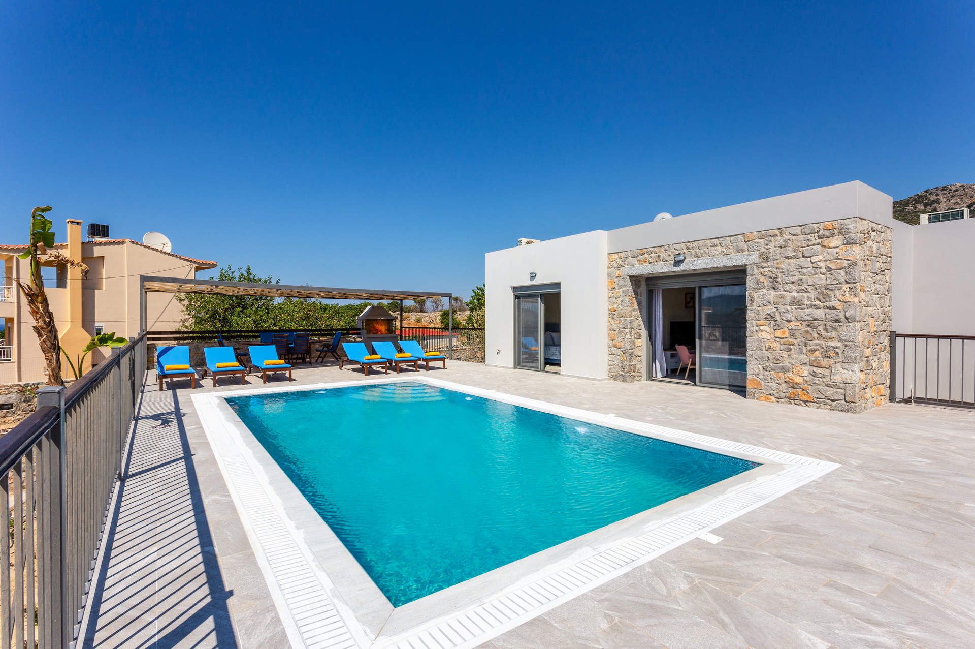A stylish villa with beautiful countryside views and only a 15 minute stroll downhill to Istron for a taste of an authentic Cretan village.